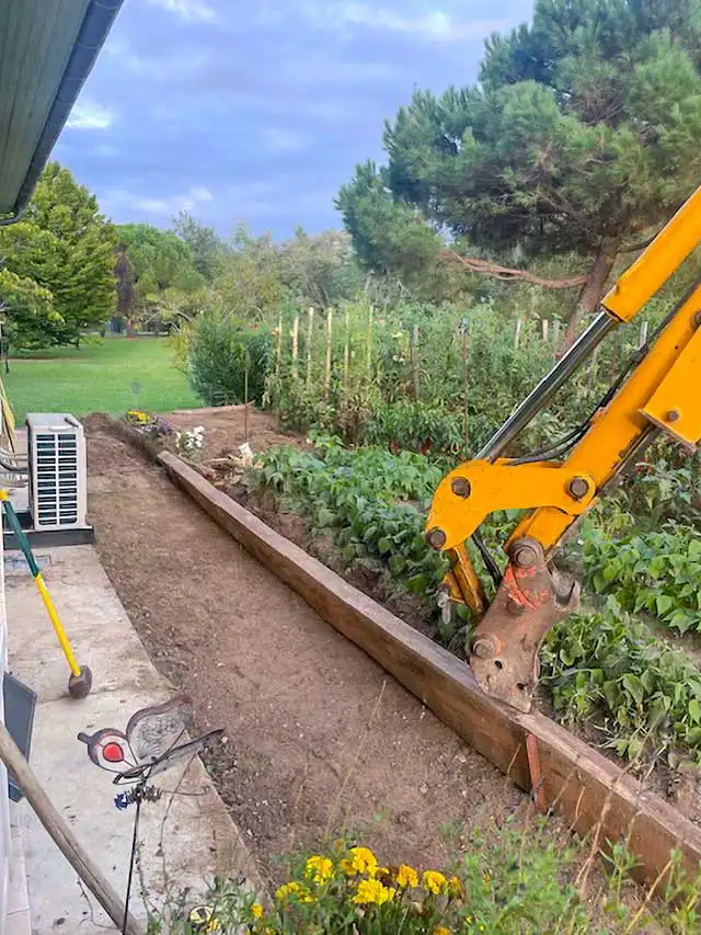 Il a suffit que de quelques heures pour réaliser l'opération pour obtenir une aire sécurisée, partageant l'espace entre le grand jardin et le potager.